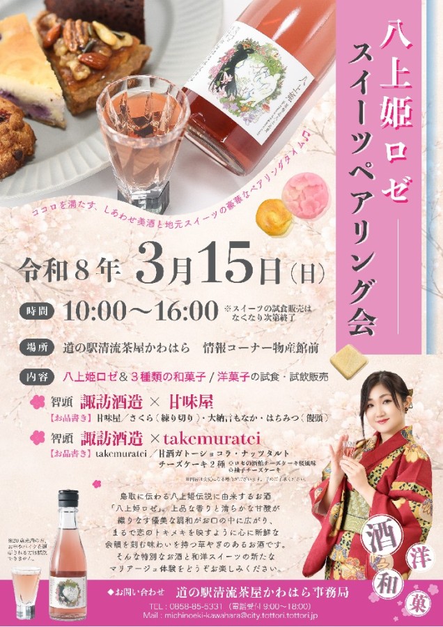 【開催日:令和8年3月15日(日)】八上姫ロゼスイーツペアリング会 河原道の駅で試飲会